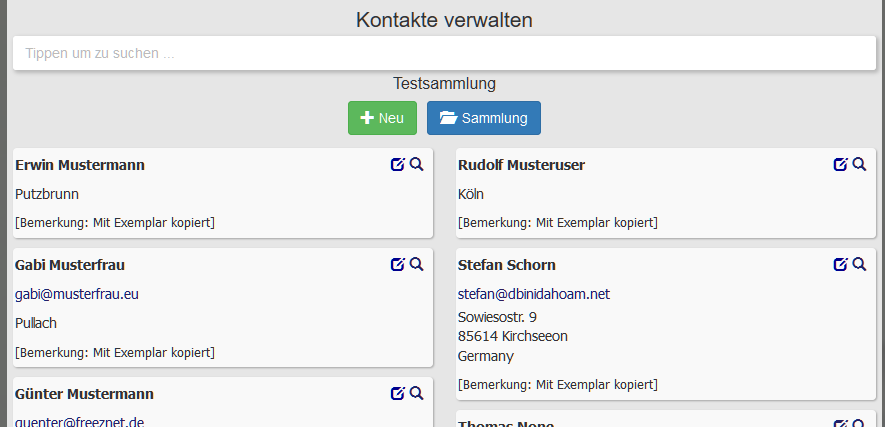 Es ist empfehlenswert eine E-Mail-Adresse, so diese bekannt ist zu hinterlegen. Über Name und E-Mail-Adresse lassen sich Kontakte beim Kopieren über Sammlungen hinweg zuordnen. Dies verhindert Doppelteinträge.