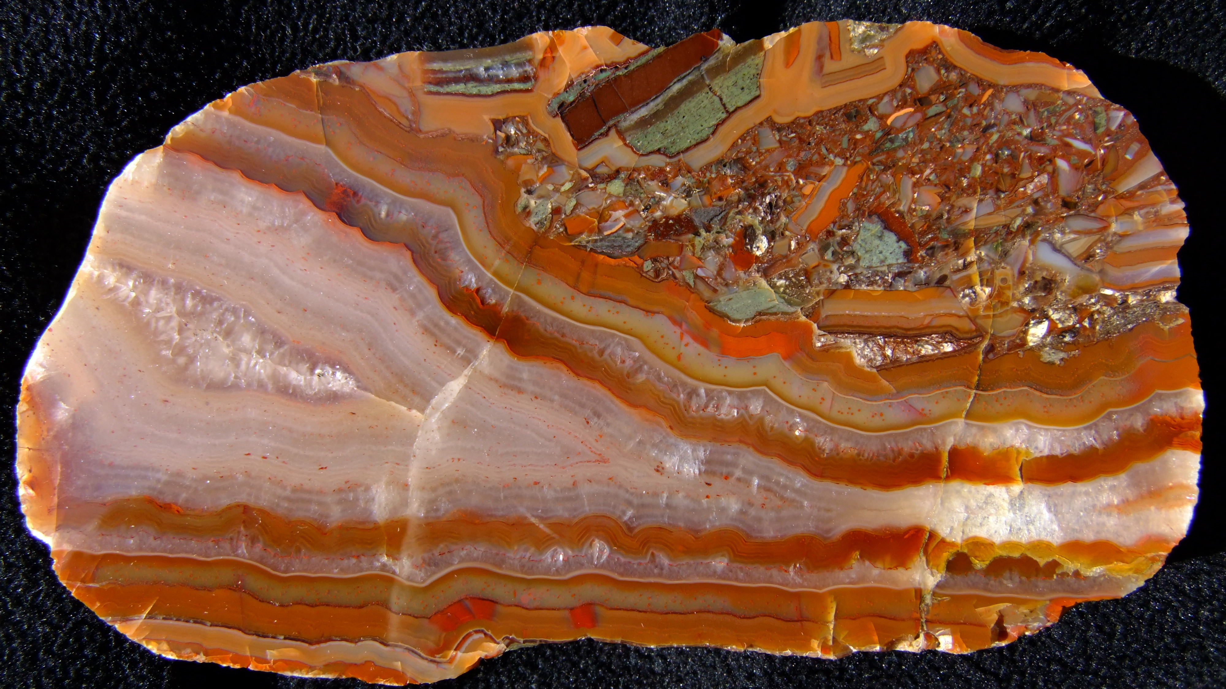Und so sieht dann der 4. Schnitt des Stückes aus: Achat geht zurück, Baryt-Tafeln dominieren das Auge war ganz am Rand.