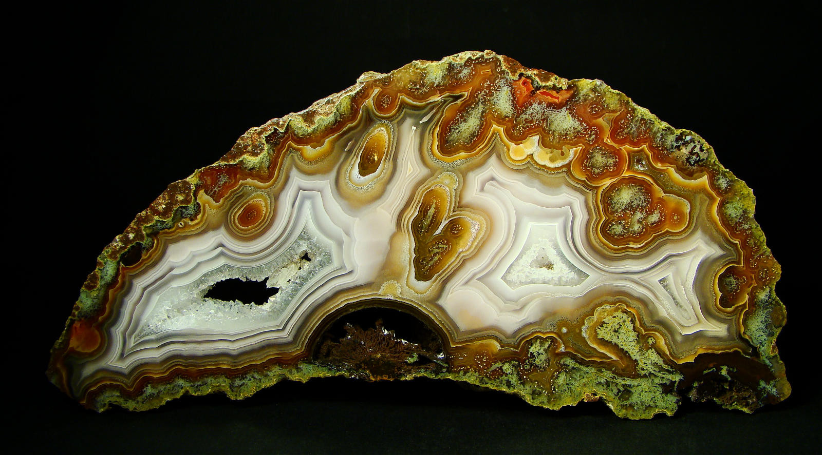 Hier mal ein schönes Stück von der Valley View Thundereggs Mine mit Moosstrukturen und Uruguay-Bänderung