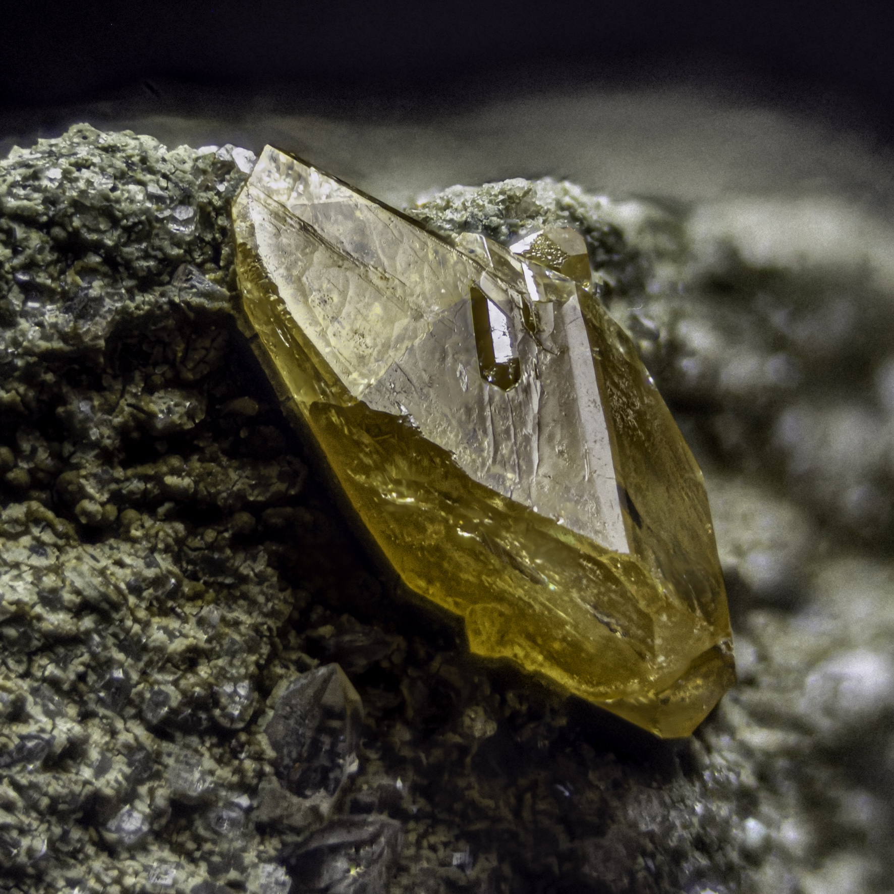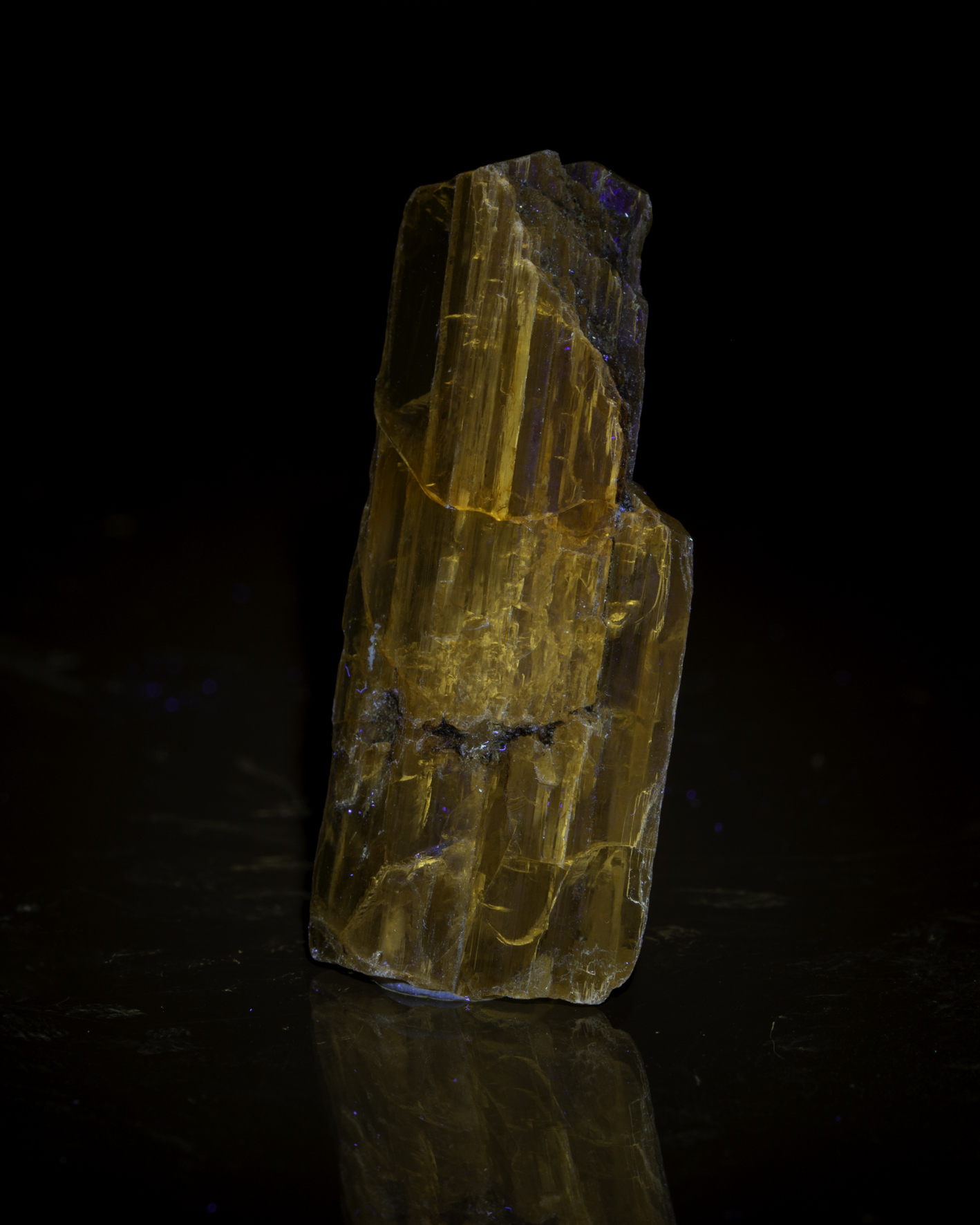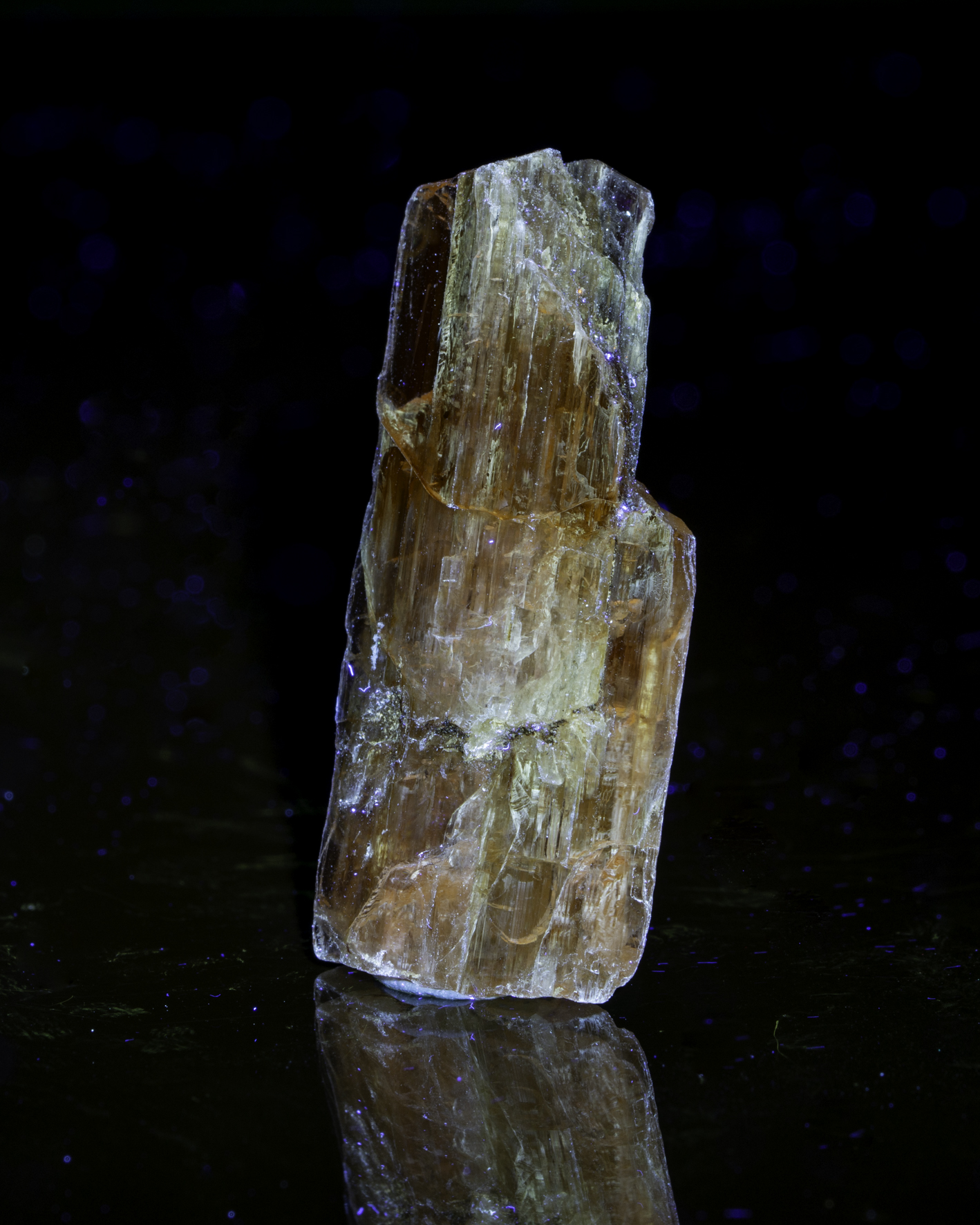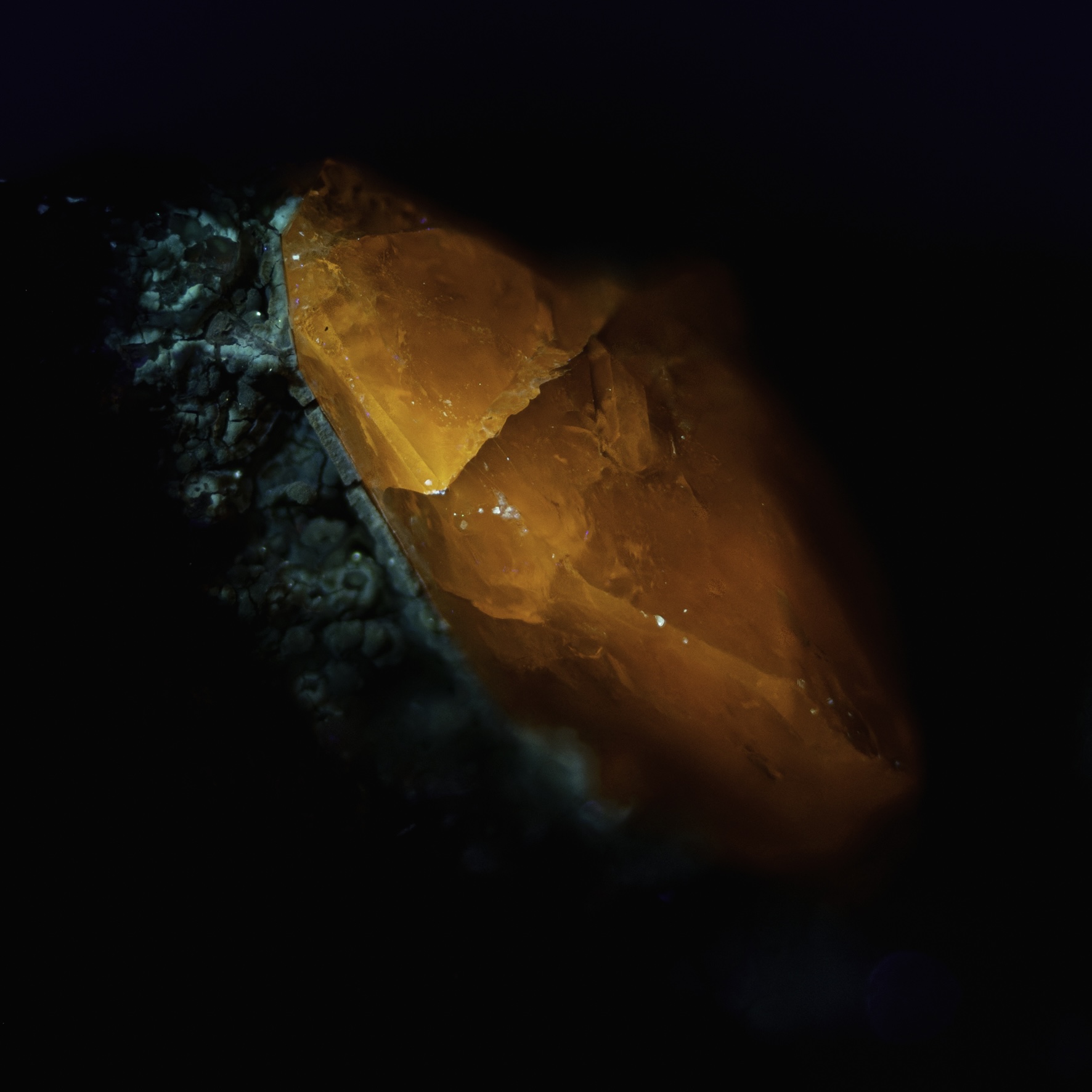 TitanitEin schönes Beispiel lumineszierenden Titanits kommt von der Alpe Stgegia in Graubünden. Tatsächlich ist es aber auch ein sehr repräsentatives Stück. Fast alle Titanite, die ich untersucht habe, lumineszieren, nur einzelne tun das nicht. Zugegeben - nicht alle sind hell. Aber sie leuchten. Grund ist, dass sich Seltenerdionen gut in Titanit einbauen lassen (größenbedingt am Ca