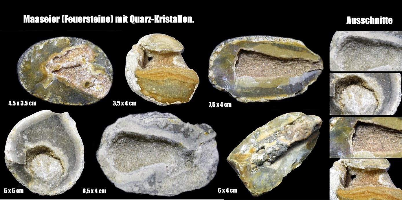 Maaseier (Feuersteine) mit Kristall-Drusen.