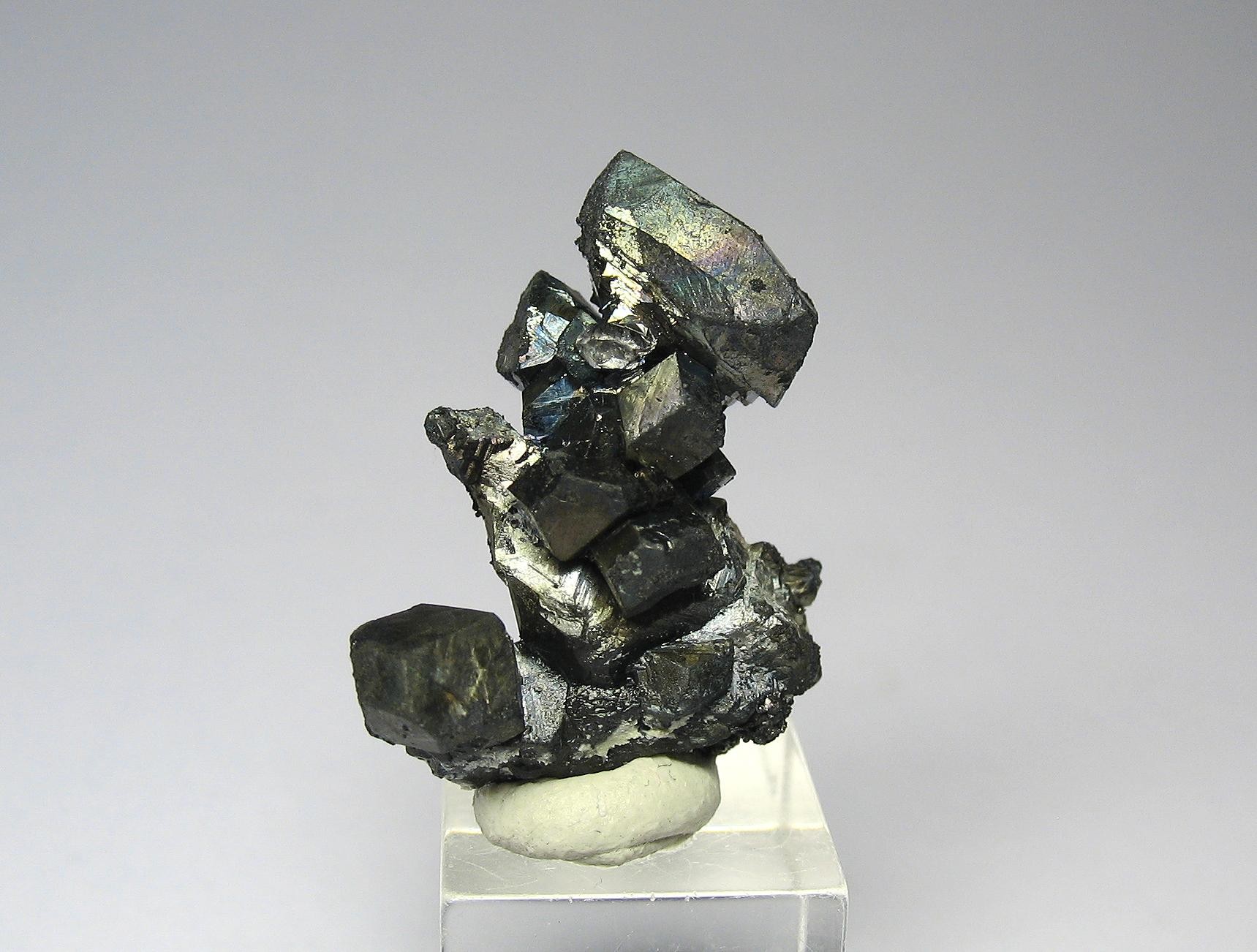 ich habe vor ein paar Jahren dzhezkazganischen Bornit gekauft, in schönen Kristallen. Jetzt ist mir bei einer Stufe etwas aufgefallen. Der große Kristall folgender Stufe ist irgendwie schichtweise aufgebaut. Schwer zu beschreiben. Wie könnte man diesen Vorgang beschreiben?