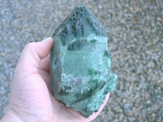 Wenn das so ist, und wenn der Kristall auch noch von kleinen grünen Quarzkristallen überzogen ist,
