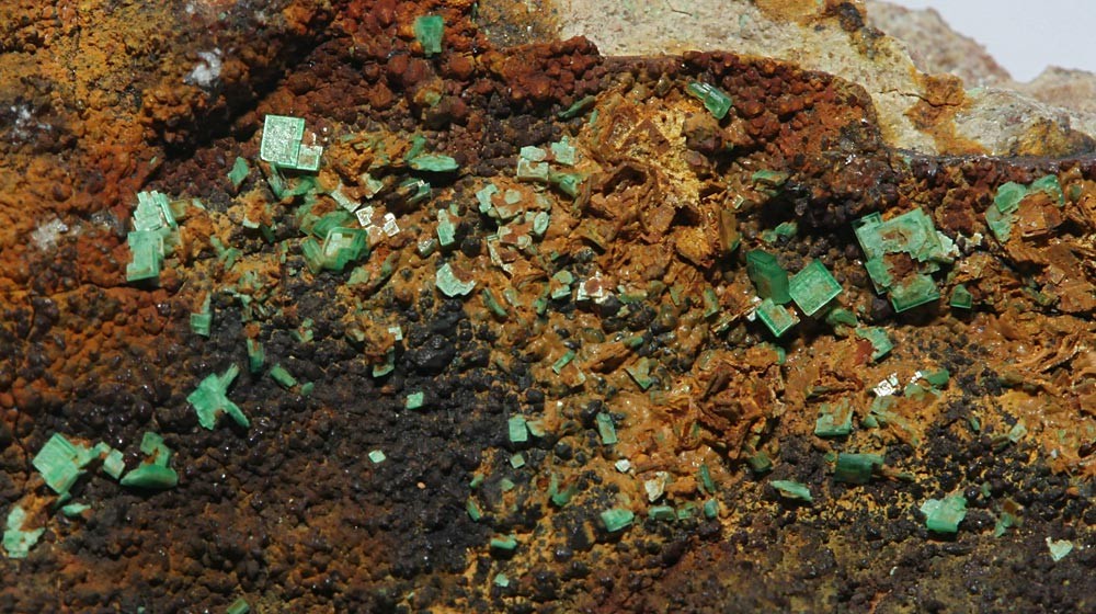 Mein bisher einzigster Sammelzug im ersten Quartal hat mich zum Tagebau Kamsdorf verschleppt. Am 18.02.09 waren die Suchumstände nicht sehr einfach, bei ca. 20cm Schnee (!)  ;), aber es ging schon irgendwie. Trotz der Schneemengen wurde im Bruch gearbeitet. An der Ostseite des Bruches wollten wir suchen. Es sah erst einmal nicht so aus, als ob man von oben irgendwo heran konnte und waren schon fast wieder auf dem Rückzug, als ich meinen Hammer nahm, und auf dreckähnliches freiliegendes braunes Zeug schlug. Und was da zum Vorschein kam, hat mich schon ein wenig verwundert: viele kleinere und größere Drusen (bis 5cm), in denen man schon vor Ort schöne Kristalle erkennen konnte.