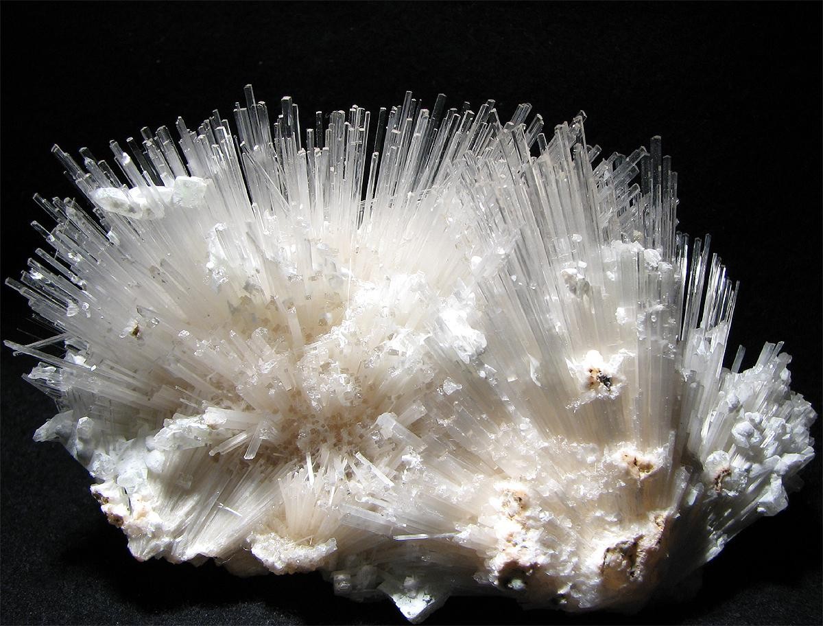 weiße Nadeln Mesolith (weil die Kristalle sehr dünn sind kommt Skolezit weniger in Frage)