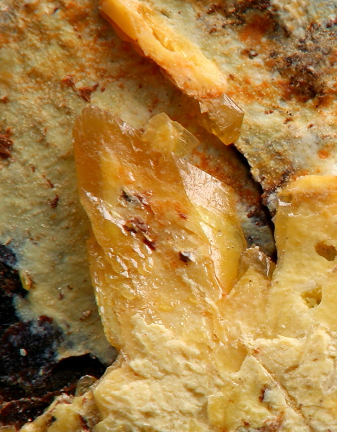 Mein bester Eigenfund dieses Quartals glückte mir am 05.06.2009 an der Ritterzeche, Schneeberg. Nachdem ich die Fundstelle dieses Jahr zum ersten mal besuchte, fand sich abseits der neuen Schüttungen ein kleines Stüfchen von 3 x 1,5 cm, auf dem einige Walpurginkristalle bis 3mm Länge aufgewachsen waren. Anbei ein Bildausschnitt. Die Länge des Walpurginkristalls beträgt ca. 3 mm.