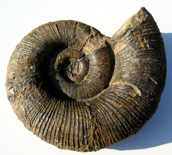 Der Liparoceras sp. mit 11cm Durchmeser wurde bei der Sanierung einer Fernwärmeleitung ca. 500m entfernt von der Fundstelle des Lytoceras im Aushub gefunden. Der Ammonit befand sich in einer Toneisensteinknolle. Nur der hintere Teil und ein Stück des Kieles schauten heraus. Durch diese Einbettung in Toneisenstein sind die Innenwindungen erhalten geblieben.