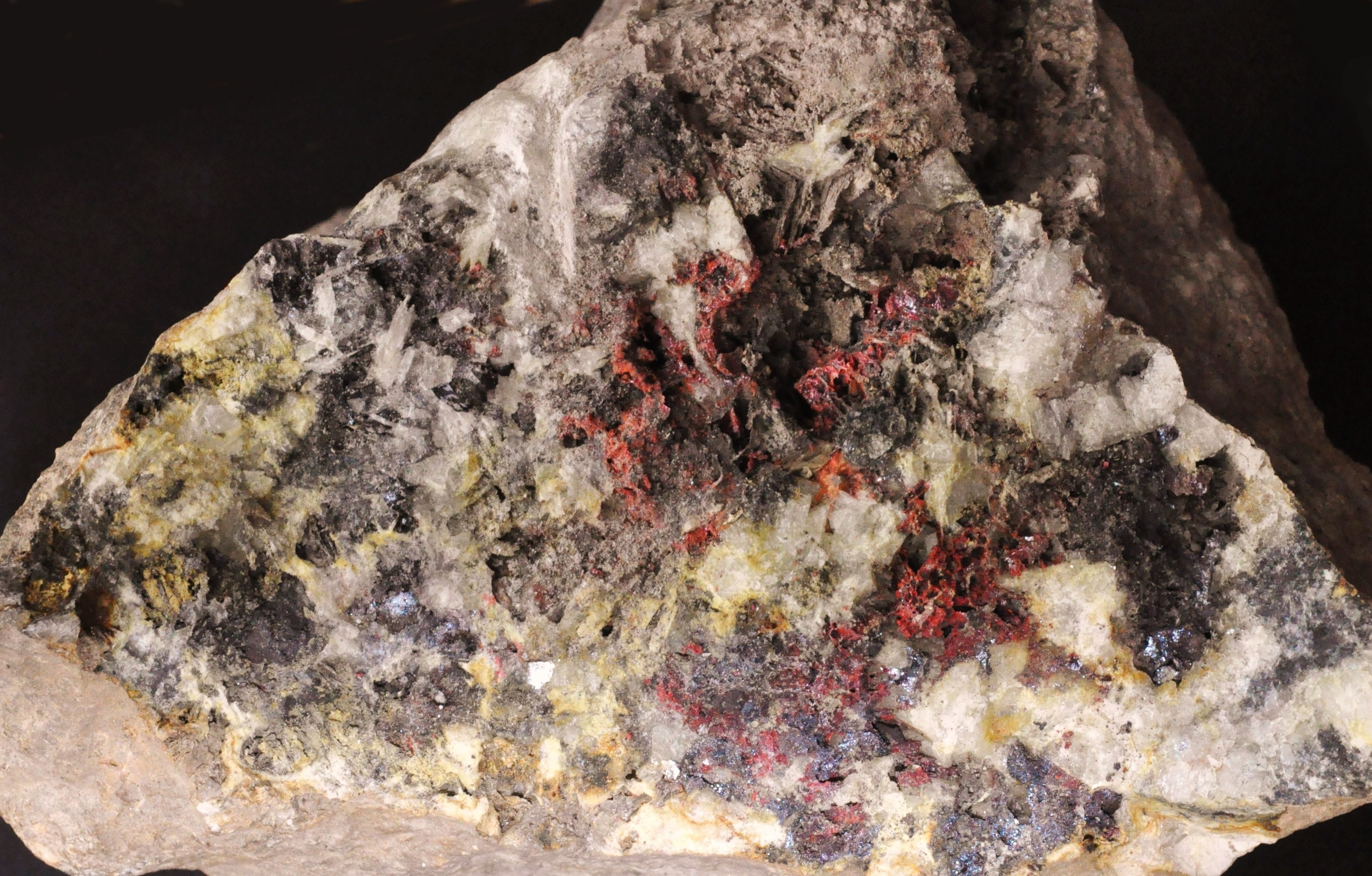 Zu den von mir identifizierten Mineralien: Proustit, Silber, Argentit, Arsen, Nickel-Skutterudit, Safflorit, Löllingit, etwas Nickelin und Pechblende.