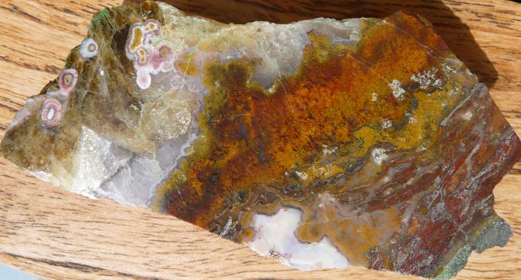 auf den ersten Blick ganz einfacher Milchquarz  doch nach dem sägen kam diese wilde achatbänderung zum Vorschein