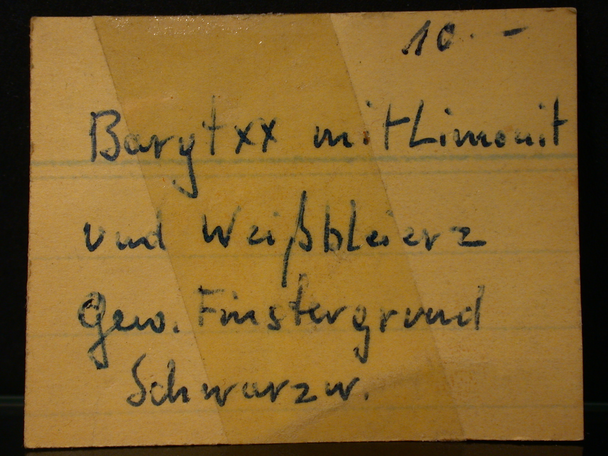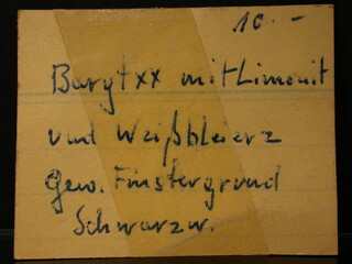 ich habe folgende Frage: Ich habe aus dem Nachlaß einer älteren Dame einige teils recht alte Stufen bekommen. Mit dabei dieses Stück. Kann der Fundort passen? Mir persönlich kam der Gedanke es könnte sich dabei eher um einen Marokkaner handelt, was jedoch aufgrund des Alters der Sammlung eher unpassend wäre. Das Stück ist ca. 6,5 x 4,5 cm groß. Die Baryte, die von hellbraunem Limonit überkrustet werden erreichen 1,5 cm. Darauf sitzen < 1 mm große Hemimorphite. Auch ca. halbzentimeter große, grüngelbe Fluoritwürfel finden sich auf der Stufe.