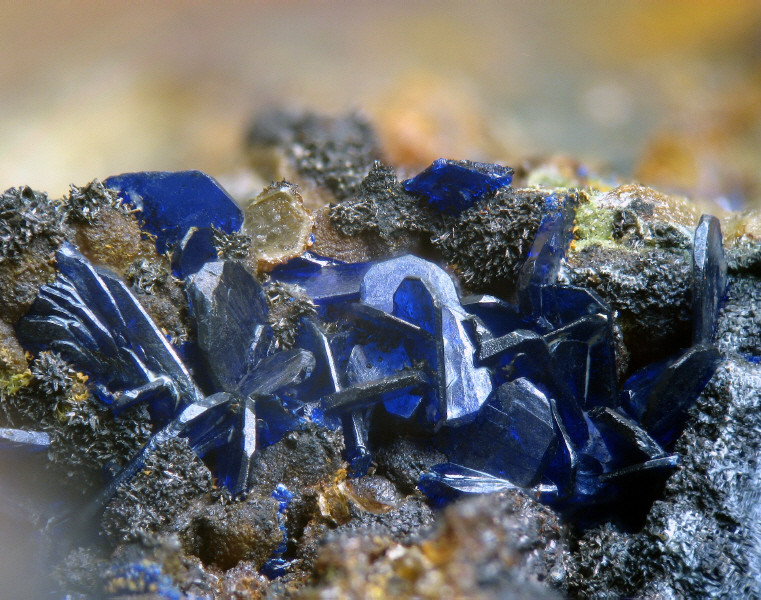 Azurit,  :) da habe ich die Qual der Wahl. Meine große Kristalle aus Tsumeb (3 cm)  oder Marokko (5 cm) sind eher schwarz als blau und die kleinen z.B. aus Wölsendorf sind zwar schön blau aber - naja - eben klein. Also hier ein Stüfchen aus Altenmittlau - dem ehemals besten Fundort für Azurit in Deutschland.
