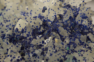Azurit,  :) da habe ich die Qual der Wahl. Meine große Kristalle aus Tsumeb (3 cm)  oder Marokko (5 cm) sind eher schwarz als blau und die kleinen z.B. aus Wölsendorf sind zwar schön blau aber - naja - eben klein. Also hier ein Stüfchen aus Altenmittlau - dem ehemals besten Fundort für Azurit in Deutschland.