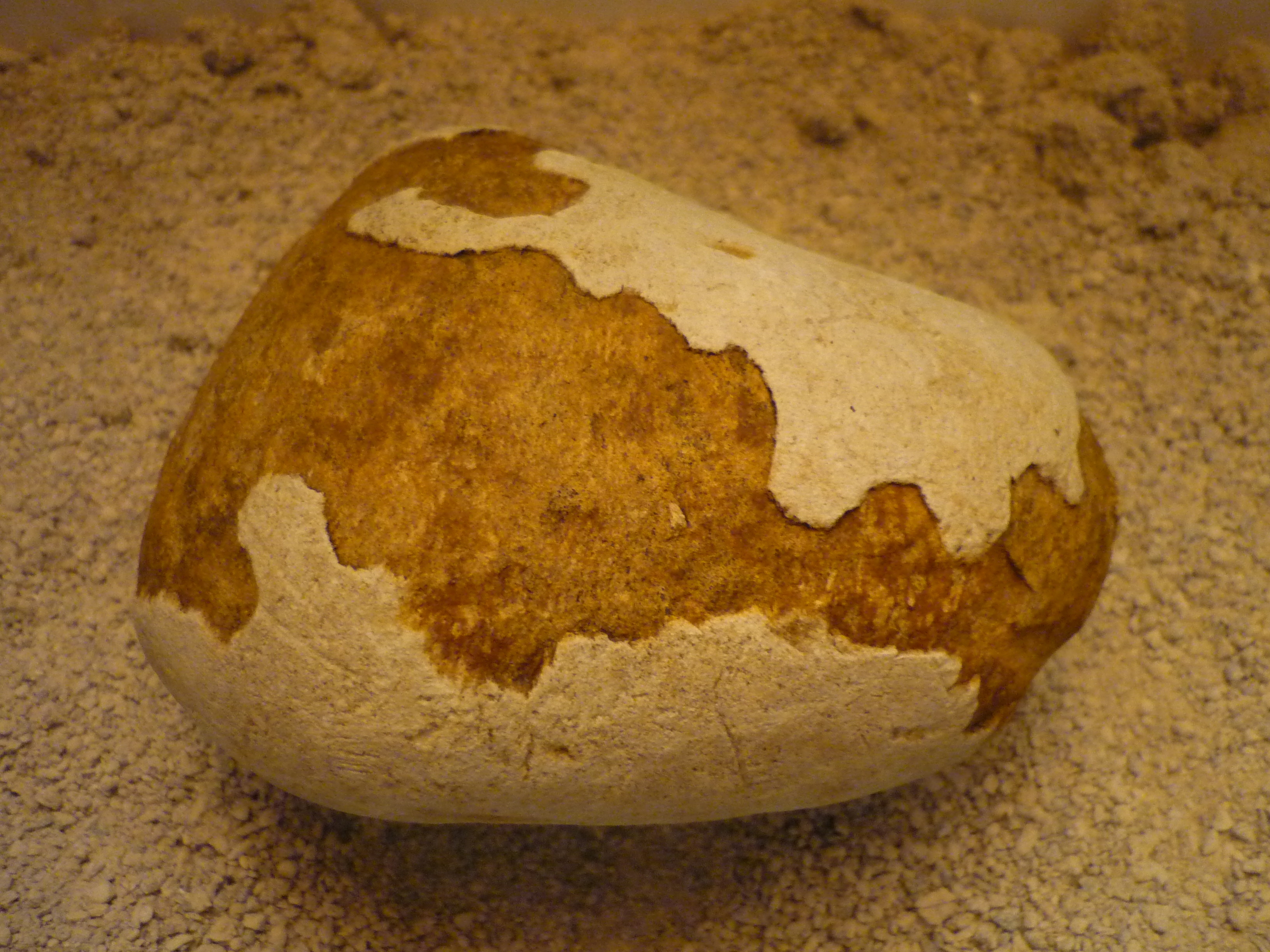 Hier rund um München gibts ja nur Kieselsteine von den Endmoränen der Eiszeit.Alles Gestein aus den Alpen.Wie kommt da so ein Sandsteinbrocken rein? Der wäre in der Gletscherbewegung doch wohl zerrieben worden!Auch beim Flußtransport durch die Isar wäre der sicherlich zerrieben worden.Und diese Kalkkruste,welche ca. 1,5mm Stärke aufweist ist auch seltsam.Mein Kollege meint,das das normal ist und er solche Steine schon viele gefunden hat.Er wollte mir auch Vergleichsmaterial mitbringen,aber da warte ich jetzt schon ein ganzes langes Jahr darauf.Eventuell hat ja der eine oder andere von Euch eine Theorie für mich.