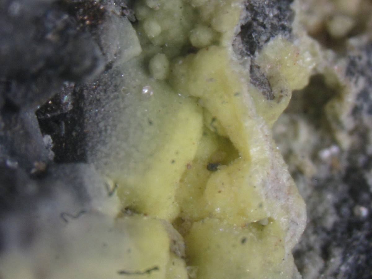 Es ist eine grünlich-gelbe Kruste, leicht radioaktiv und schwach grünlich unter UV fluoreszierend.