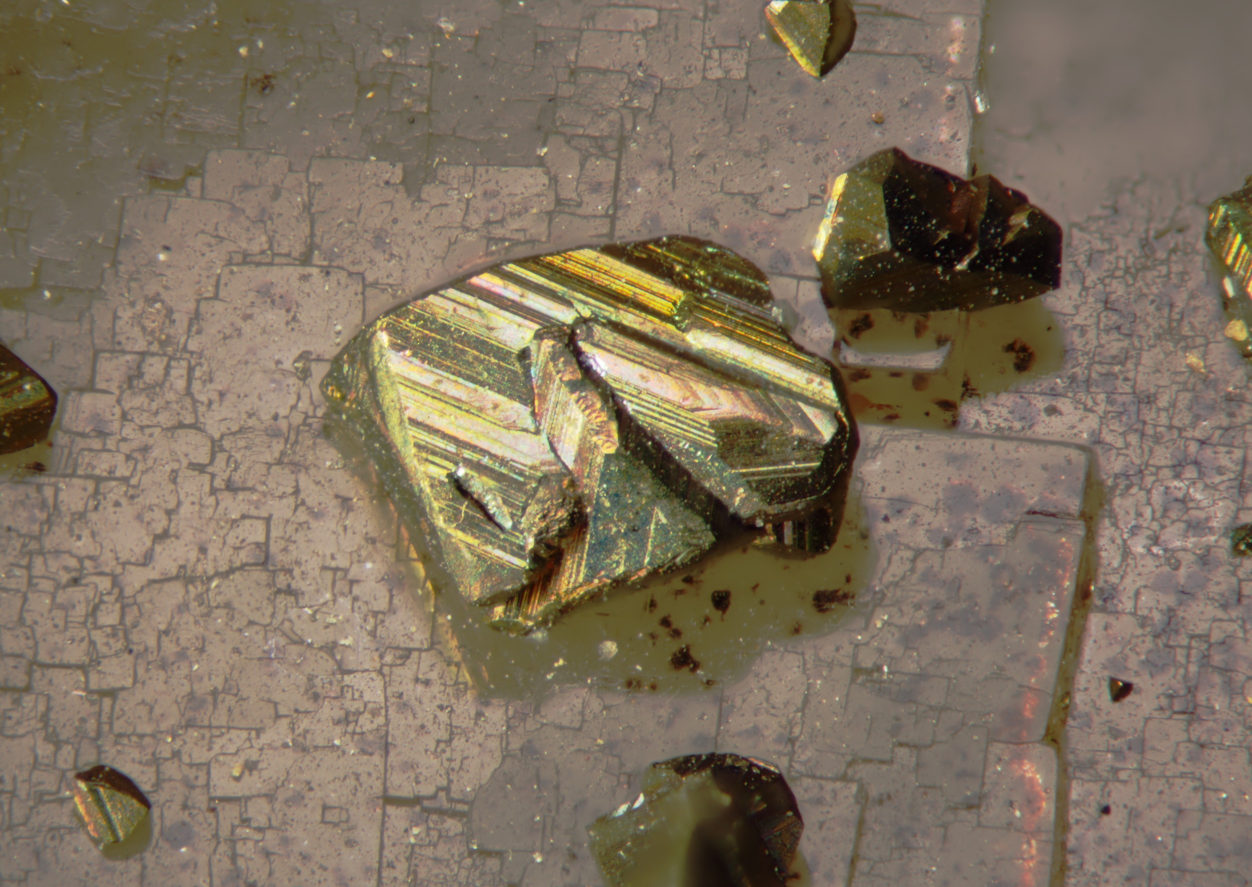 Chalkopyrit vom Steinbruch Jost bei Altenkirchen in Hessen. Bildbreite 2mm.
