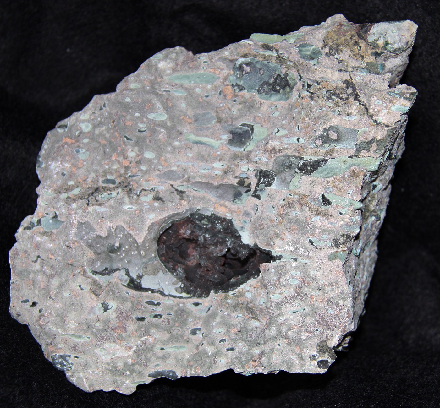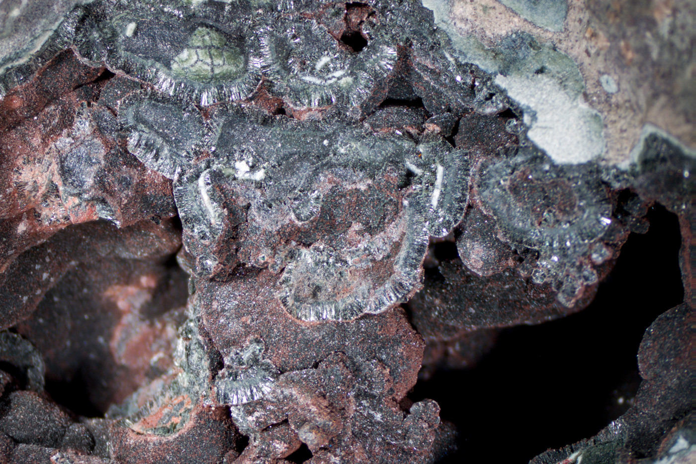 3. Was ist das grüne strahlige Mineral, das als Rasen die Kluft auskleidet
