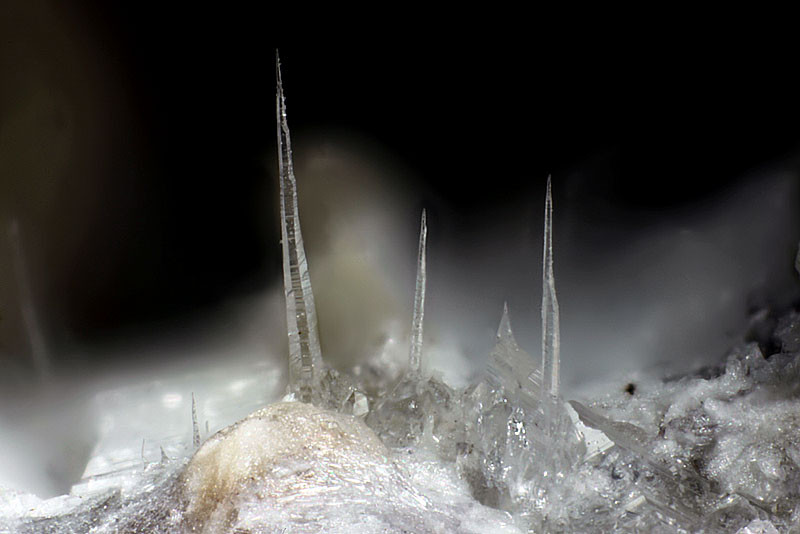 Nunja, ich gehe mal davon aus, das alle Hauptkomponenten der Schmelze in so hohen Konzentrationen (=Übersättigungen) vorliegen, das es zur spontanen Kristallbildung kommt. Nachdem die Hauptkomponenten auskristallisiert sind, bleiben die Ionen (Elemente) in Lösung, die nicht so richtig in die Gitter der Hauptminerale passen und natürlich diverse Fluide wie Wasser und auch Kohlendioxid. An geeigneten Stelle (Schrumpfrissen, Blasenhohlräume) können dann die weniger passenden Elemente Minerale bilden, ich nenne sie einfach mal "Nebenkomponenten". Ich denke da z.B. an den Anatas vom Petersberg bei Halle. Nachdem nun auch die Nebenkomponenten ihren Platz gefunden haben, bleiben nur noch die wirklich seltenen Elemente übrig, wobei man natürlich im Hinterkopf behalten sollte, das diese nicht nur in einem Mineral gebunden werden können. Das bedeutet, das in den Restlösungen bestimmte Mineralzusammensetungen (z.B. die Kombination zur Bildung von Gadolinit) in so geringen Konzentrationen vorliegen, das sie nicht mehr spontan auskristallisieren können. Ok, irgendwo gibt es dann doch mal einen Keim der zu einem Kristall heranwachsen kann und man hat einen u.U. recht beachtlichen Gadolinitkristall in einer sonst eher gadolinitarmen Umgebung. Das wäre dann die direkte Anwendung bzw. der direkte Bezug zu eben jenem Ostwald-Miers-Bereich, da ja genau diese Bedingungen herschen: Keine spontane Keimbildung möglich, aber evtl. vorhandene Kristalle wachsen weiter. Was letztlich dazu führt, das hier und da dann doch mal ein Keim zu einem Kristall werden kann, wird sich kaum sichre klären lassen. Grade bei dem Steinbruch Petersberg ist mir schon oft aufgefallen, das die Synchisite in ein und demselben Brocken sehr unterschiedlich verteilt sein können und gelegentlich ware Nester bilden. Und dann findet man auch Brocken, wo fast statistisch verteilt immer mal wieder einzelne Kristalle oder kleine Gruppen auf den Kuftflächen zu finden sind. Bei den Nestern gab es eine hohe Konzentration von Synchisit-"Bausteinen" die zur spontanen Kristallbildung ausreichten und dann die beobachteten Nester bildeten und bei den statistischen verteilungen war die Lösung mit der Bausteinkonzentration irgendwo im Ostwald-Miers-Bereich. Das ist so im Großen und Ganzen die Theorie, die ich mir zu diesem Thema zurechtgebastelt habe - keine Ahnung, ob das so korrekt ist, ich sehe aber auch keine offensichtlichen Fehler in dem Erklärungsmodell. Vielleicht kann ja noch jemand anderes etwas dazu beitragen...