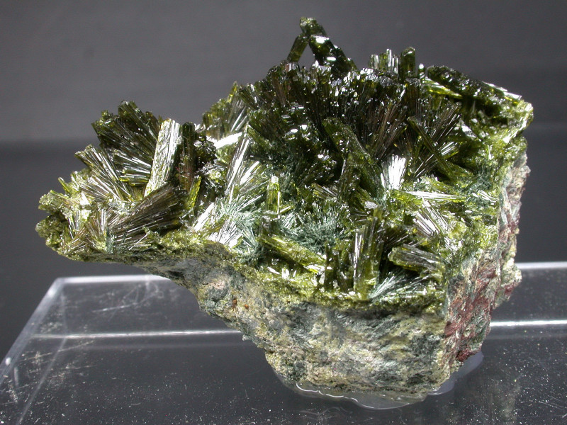eine meiner Hausfundstellen ! Wohl die schönsten Epidote, die je in Spanien gefunden wurden, mit dunkelolivgrünen, superglänzenden, langgestreckten Kristallen von bis 2 cm. Die besten Stufen kamen vor etwa 3-4 Monaten raus; einige Epidote kommen auch zusammen mit fantastischen Axinitkristallen im cm-Bereich vor.