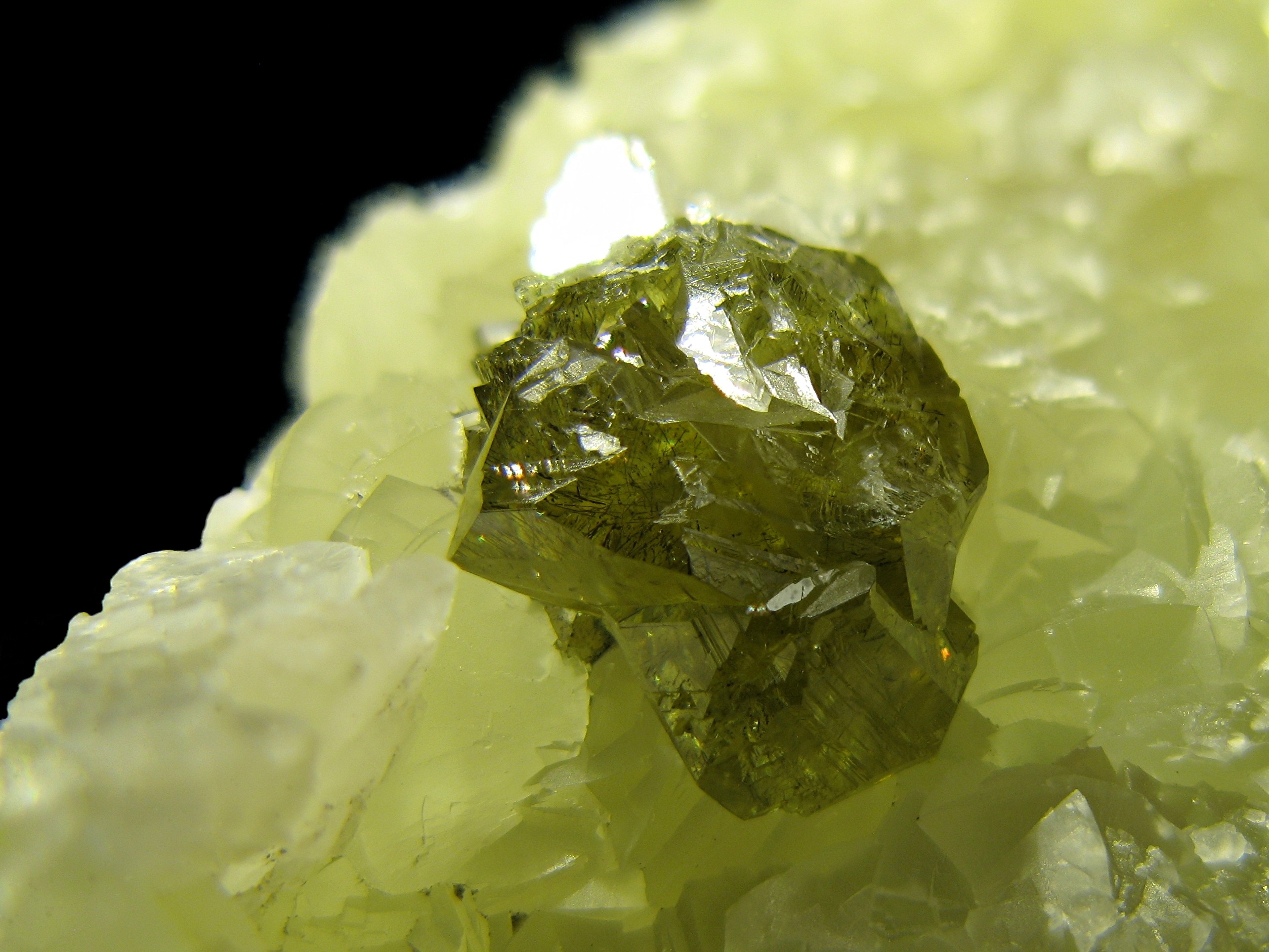 Hier ein Beispiel: Ein ca. 4 mm großer Kristall auf Dolomit**.