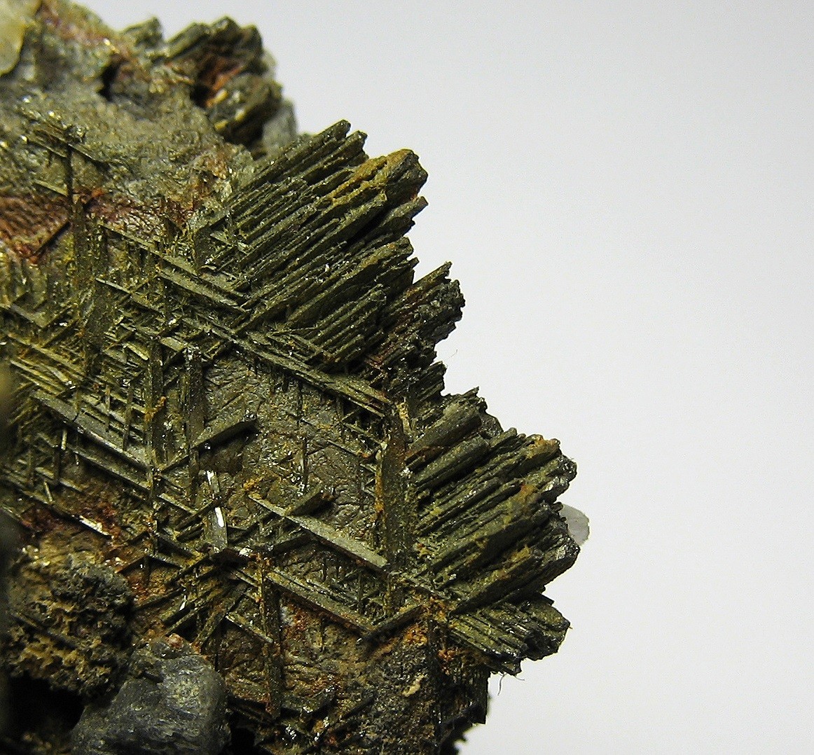 Form und Farbe sprechen für Pyrrhotin. Aber bei genauerem Betrachten sehe ich stiftförmige Auswüchse (an den Rändern der Pyrrhotin-Platten.