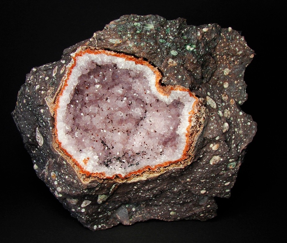 eine durch ätzen freigelegte Amethystdruse im Melaphyr. Wie man unschwer erkennen kann hat sich auch die Mandel vom