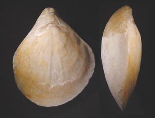 Das sieht für mich eher nach einer Brachiopode als nach einer Muschel aus. Es ist allerdings auf dem Bild schwer zu erkennen ob die beiden Gehäusehälften symetrisch sind.