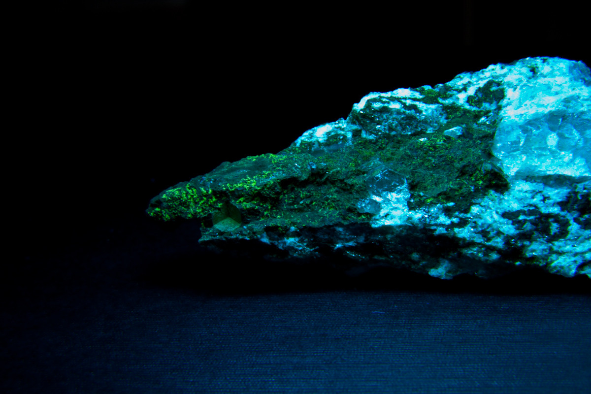 An Scheelit dachte ich auch schon. Könnte mir auch gut vorstellen, das hier in Bilderpaar 2 der Verursacher zu finden ist. Wobei die Fluoreszenzfarben irgendwie nicht so ganz passen.