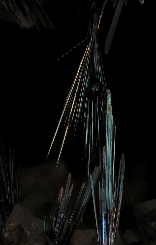 Die stark verfremdende Bildtechnik von Oleg nur wenige bis keine metallischen Reflexe zulässt.“ finde ich nur bedingt zutreffend – ich sehe da in den Antimoniten durchaus Reflexe – wie auch in den folgenden Galeniten. Natürlich auf ein Minimum reduziert, aber ich bin eben kein Freund von allzu viel „Geglitzer“ - mir ist es lieber, wenn ich dafür die Struktur der Kristallflächen deutlich erkennen kann.