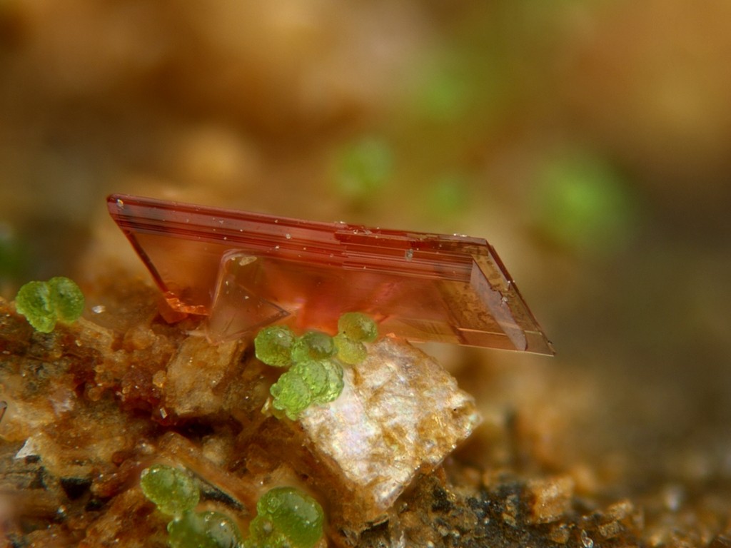 Hier ein Erythrin von der Schmiedestolllenhalde bei Wittichen im Schwarzwald. Der Kristall hat eine Länge von ca. 2 mm. Gefunden im September 2008.