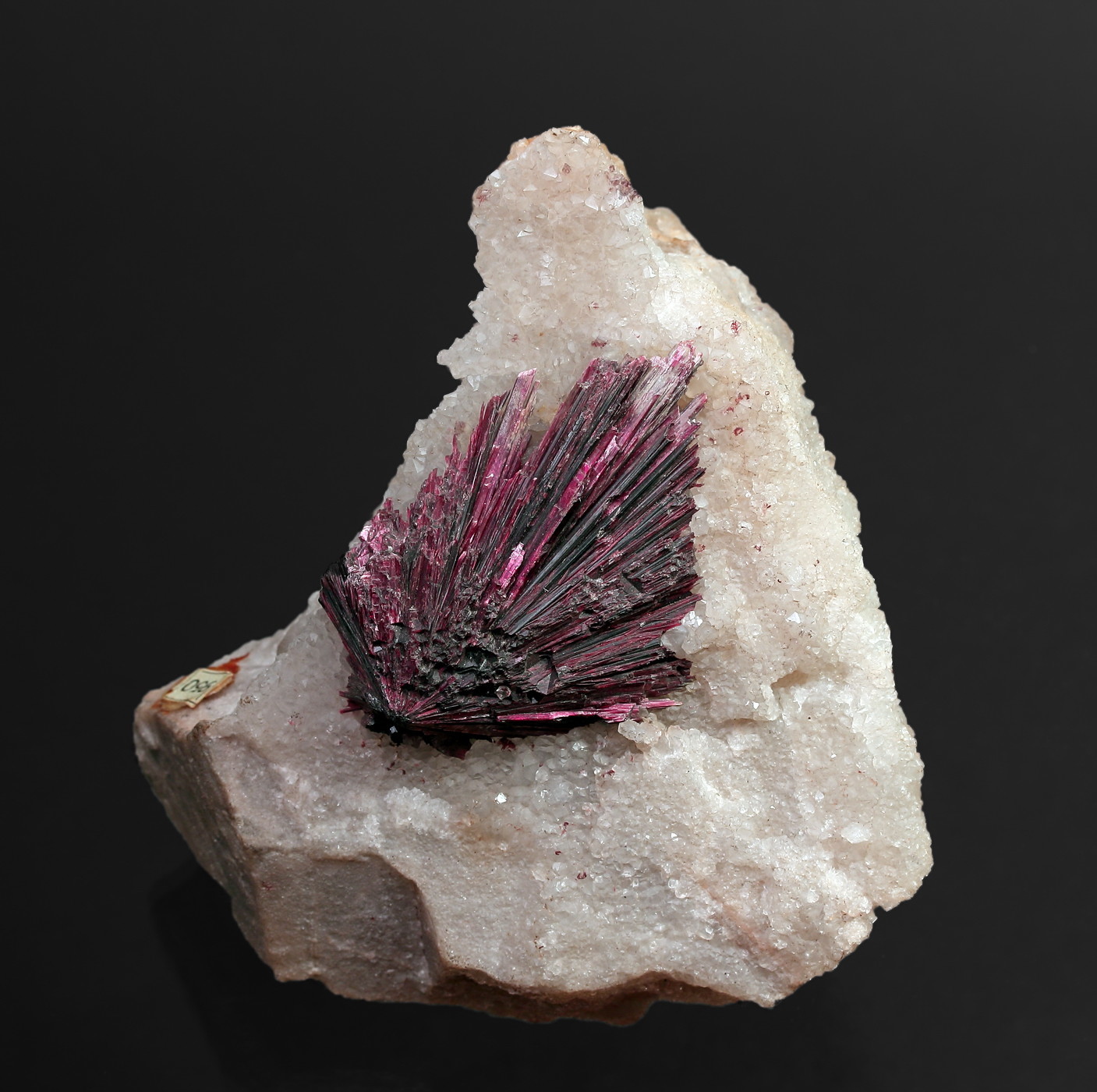 Erythrin Kristall auf Calcit**, höhe des Kristalls  4 mm.