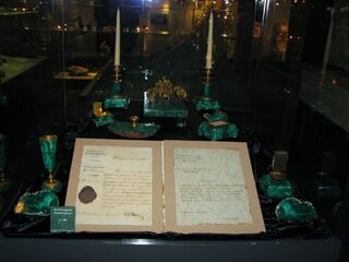 Malachit stehen, anbei ein Bild. Im Hintergrund erkennt man noch Säulen aus Lapis Lazuli.