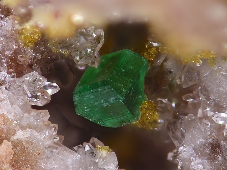 Zuerst nimmt man an, daß grüne und gelbe Kristalle einer Uranlagerstätte auch Uranminerale sein müssen. Nun aber habe ich festgestellt, daß diese grünen und gelben Minerale, welche nebeneinander auf Mikroklüften auftreten keinerlei Fluoreszenz aufweisen (kurzwelliges UV). Bei grünen Uranmineralen kann das schon orkommen - Zeunerit, Torbernit, Johannit. Aber ein gelbes Kupfermineral fällt mir jetzt nicht ein. Gelbe Uranminerale müßten also alle fluoreszieren, oder?