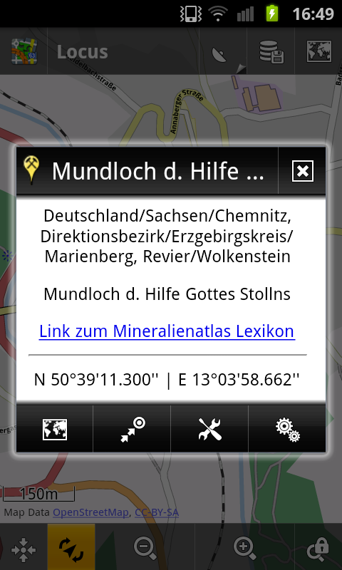 Das Besondere an dem Programm ist die Möglichkeit die Koordinaten-Datein des Mineralenatlas zu laden. So habt Ihr jederzeit den Überblick welche Fundstellen sich im Umkreis von Ihrem Standort befinden. Dies funktioniert auch ohne Internetanbindung.