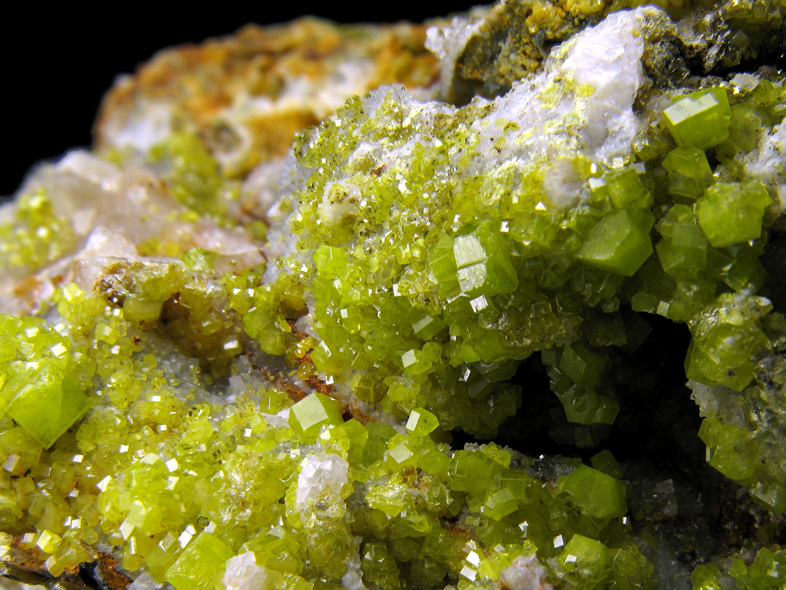 Pyromorphit von der Grube Vereinigung bei Eisenbach im Taunus. Bildbreite: 1,6mm