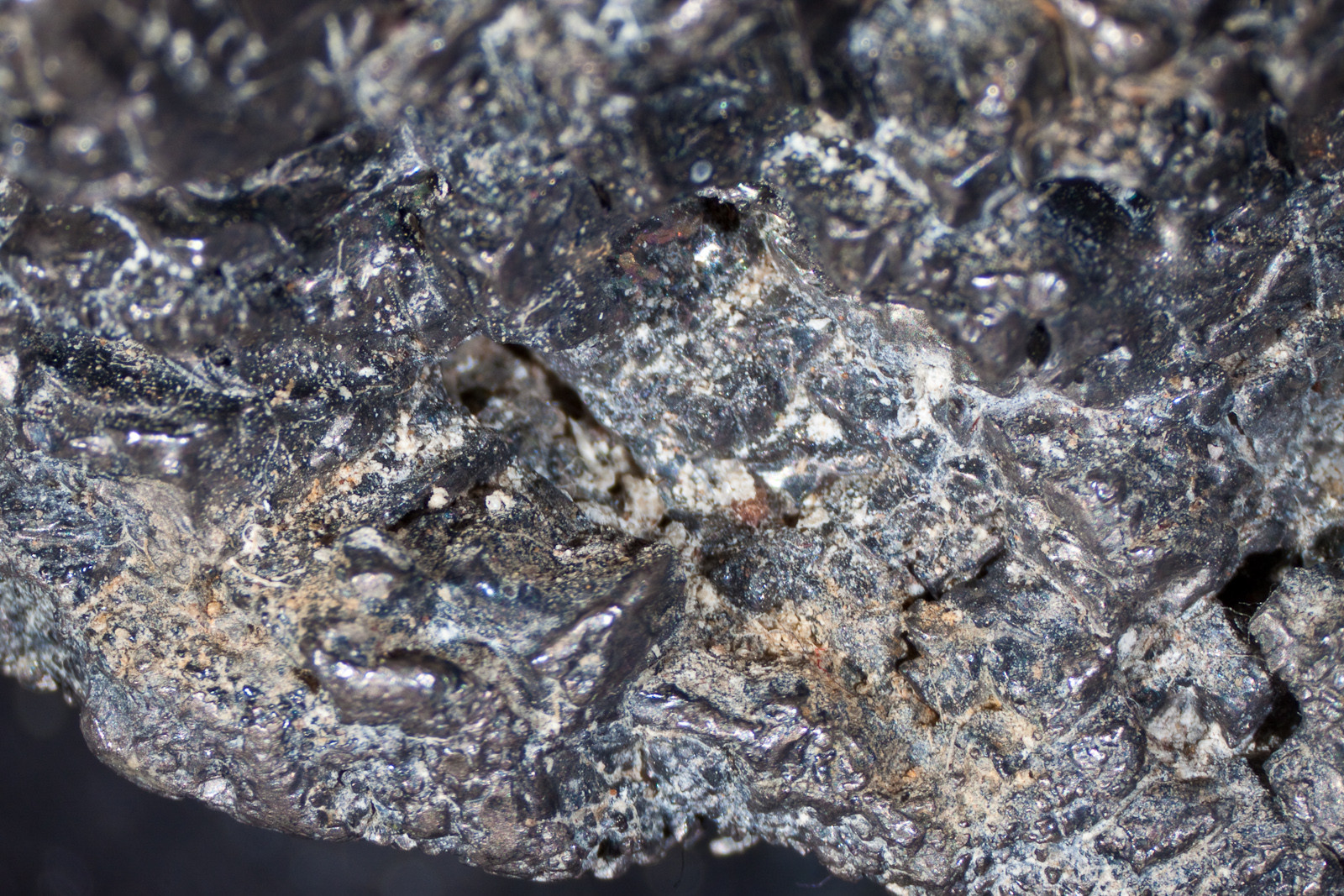 Ich hänge mal 3 Bilder an von einem Wismut-Hüttenprodukt, das Stück ist zwar nicht so frei auskristallisiert wie Stefans Stück aber hat herrliche für Wismut auch typische "Federwismut" Kristalle.