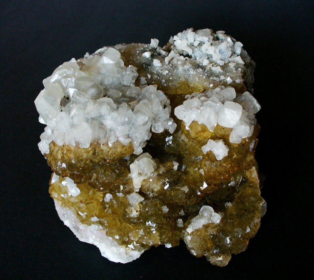 Philip Slugslayer hat hier eine Form der Bestimmung gewählt die ich aufgrund deiner Äußerung nicht zulassen kann, zumal es von Grube Gisela weiße Calcit'e auf gelben Fluorit gegeben hat.