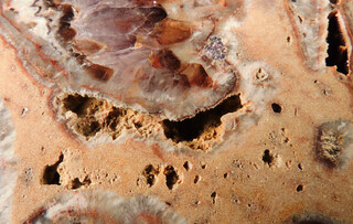 Es ist davon auszugehen das die Matrix in ihrer Entwicklung mehrmals verändert wurde. Eine zusätzliche Verkieselung schließe ich nicht aus da Quarzkristalle in einzelnen Drusen vorhanden sind. Die Bergakademie Freiberg wurde auch zur Thematik angefragt.