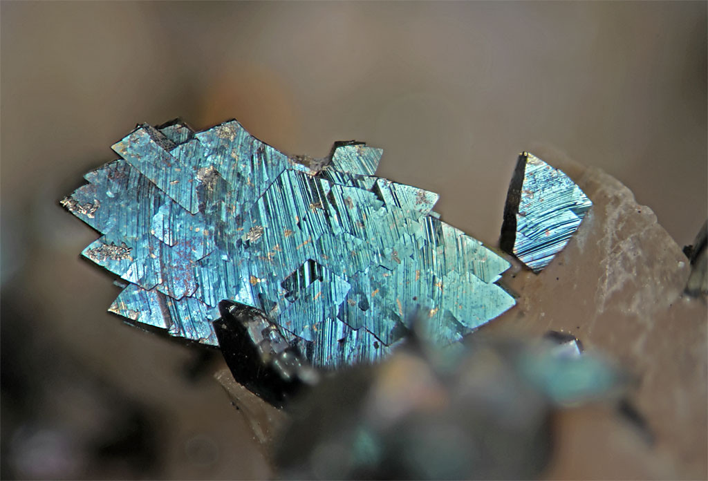 zweites...    haubi_2:  Markasit von der Halde des Glückauf-Schachtes Langenau bei Freiberg/Sachsen(Eigenfund 1987), Bildbreite ca.3 mm