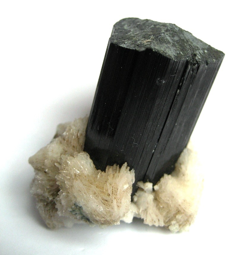 Begleitmineral auf pakistanischem Schörl / Albit Var. Cleavelandit