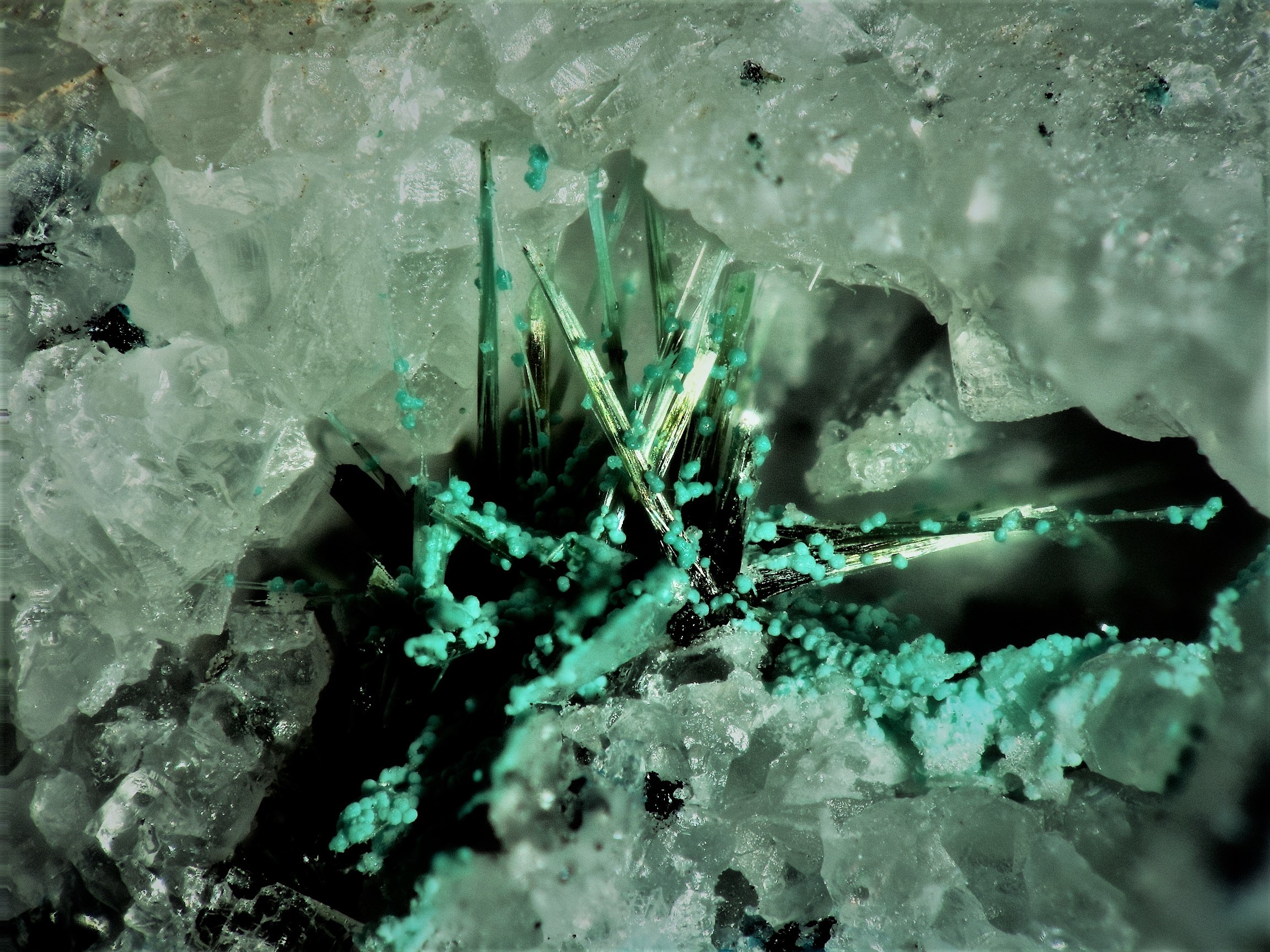Habe den Test mit Salzsäure gemacht. Die hellblauen Kugeln sind kein Malachit.
