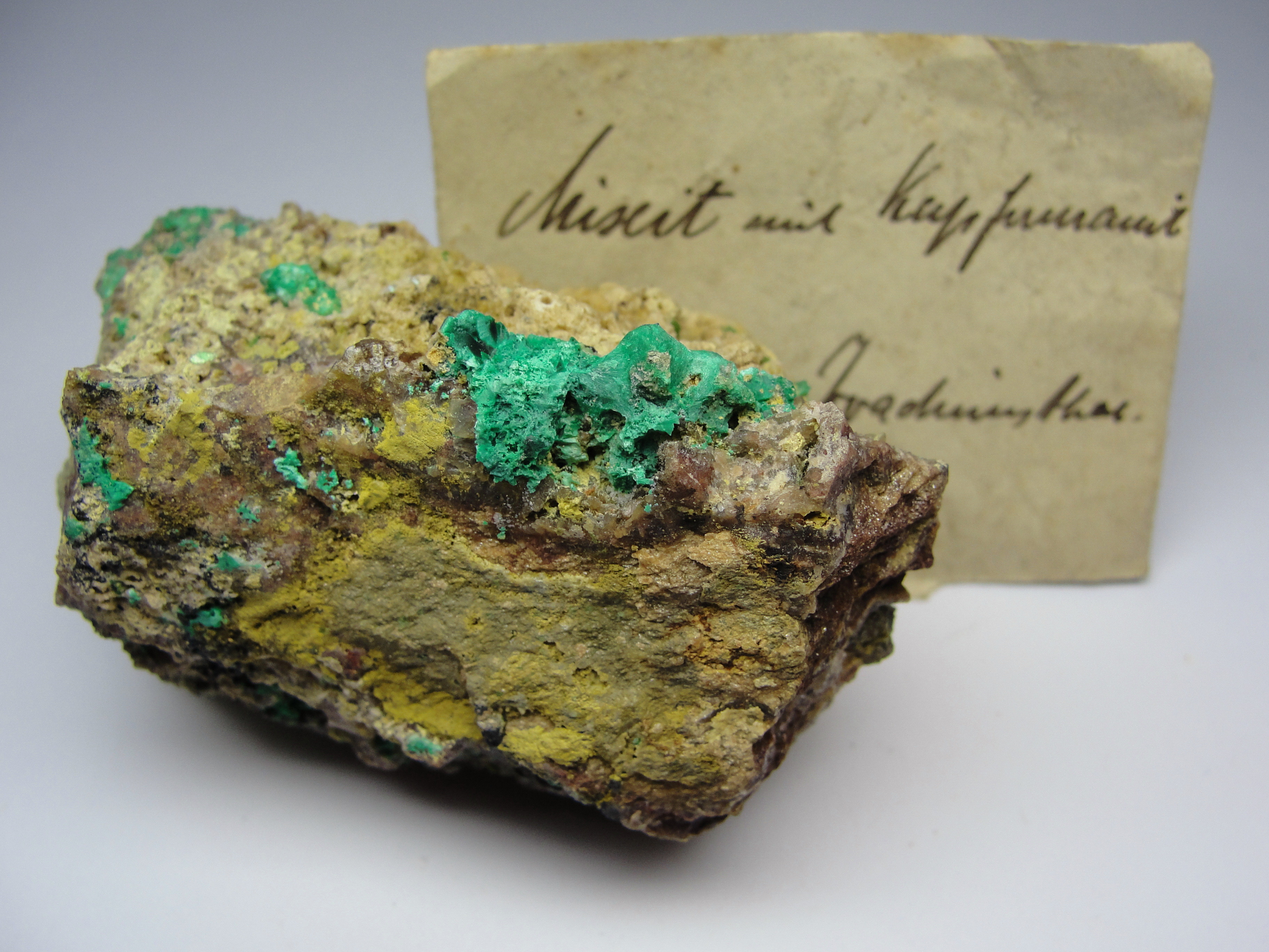 Das 2. könnte entweder ein Kupfermineral (Mixit, Malachit, Brochantit, Antlerit o.ä.), ein grünes Arsenatgel oder ein Ni-Mineral (es gibt u.a. den dunkelgrünen Morenosit) sein.