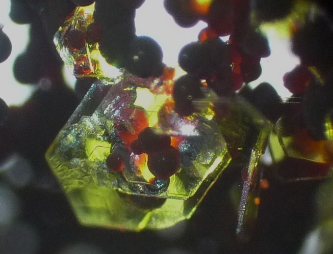 Zu den Kügelchen: Hast du mal geschaut, ob man evtl. winzige hexagonale Umrisse erkennen kann? Ist schwer zu sagen, da so klein, aber würde was Richtung Selten-Erden Mineral vermuten, evtl. Bastnäsit, oder ähnliches....