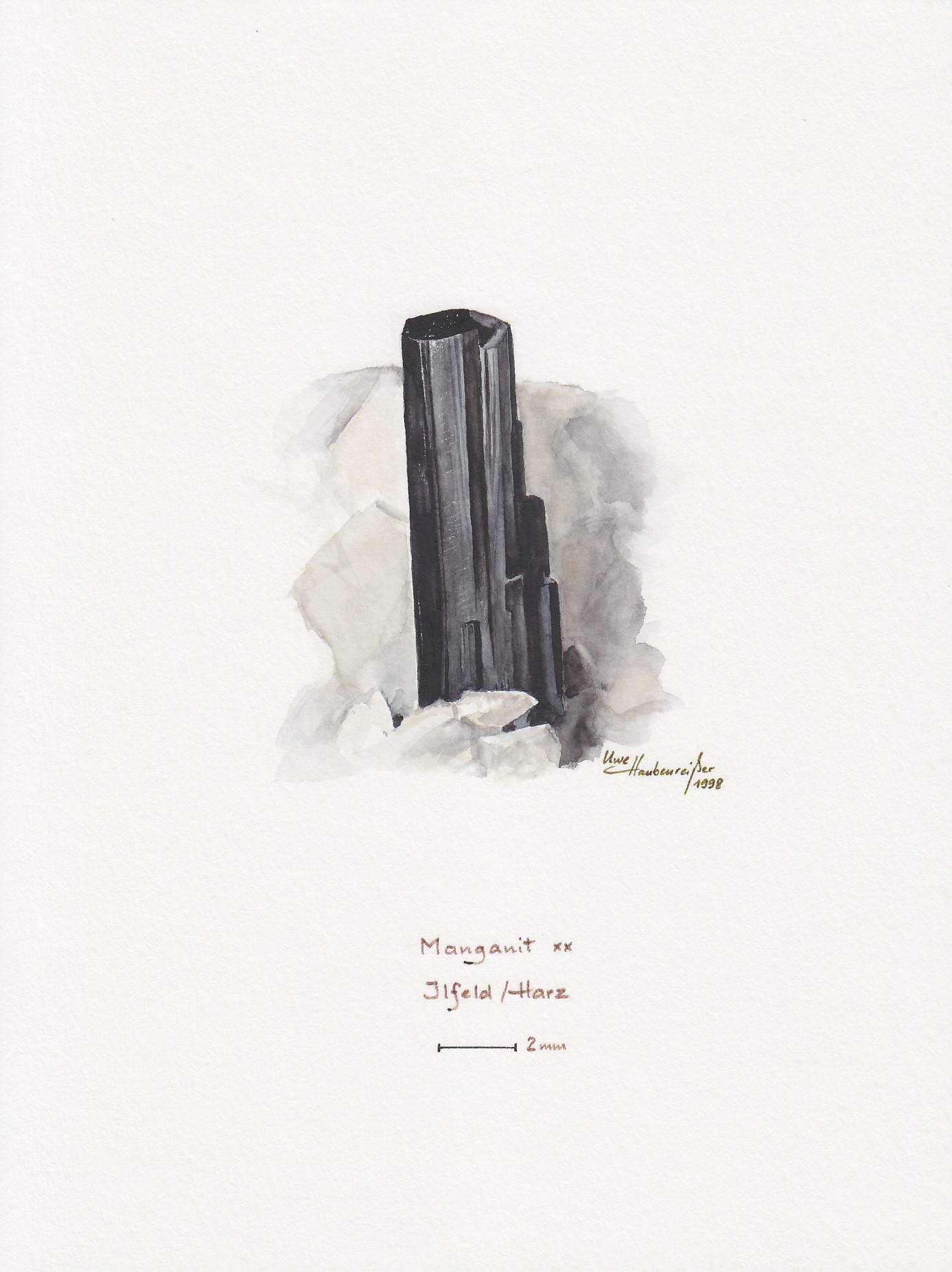 Einen Manganit aus Ilfeld habe ich mal gezeichnet: