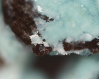 Korrekt, diese Kristalle waren ursprünglich mal Cuprit, es gibt dort verschiedene Mineralien, die danach Pseudomorphosen bilden. Was diese blass türkisfarbene Zeug ist, das dort die Perimorphose bildet, weiß ich leider nicht, sorry.