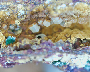 Und das kleine grüne Büschel unten links auf dem zweiten Bild könnte Malachit sein, oder auch Aurichalcit.