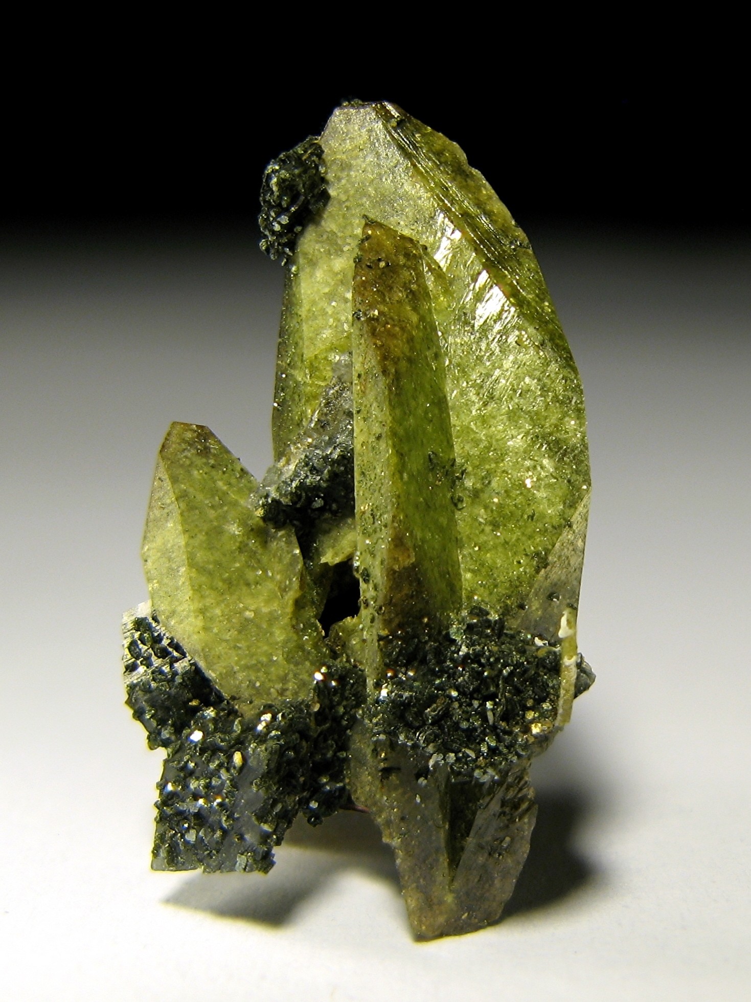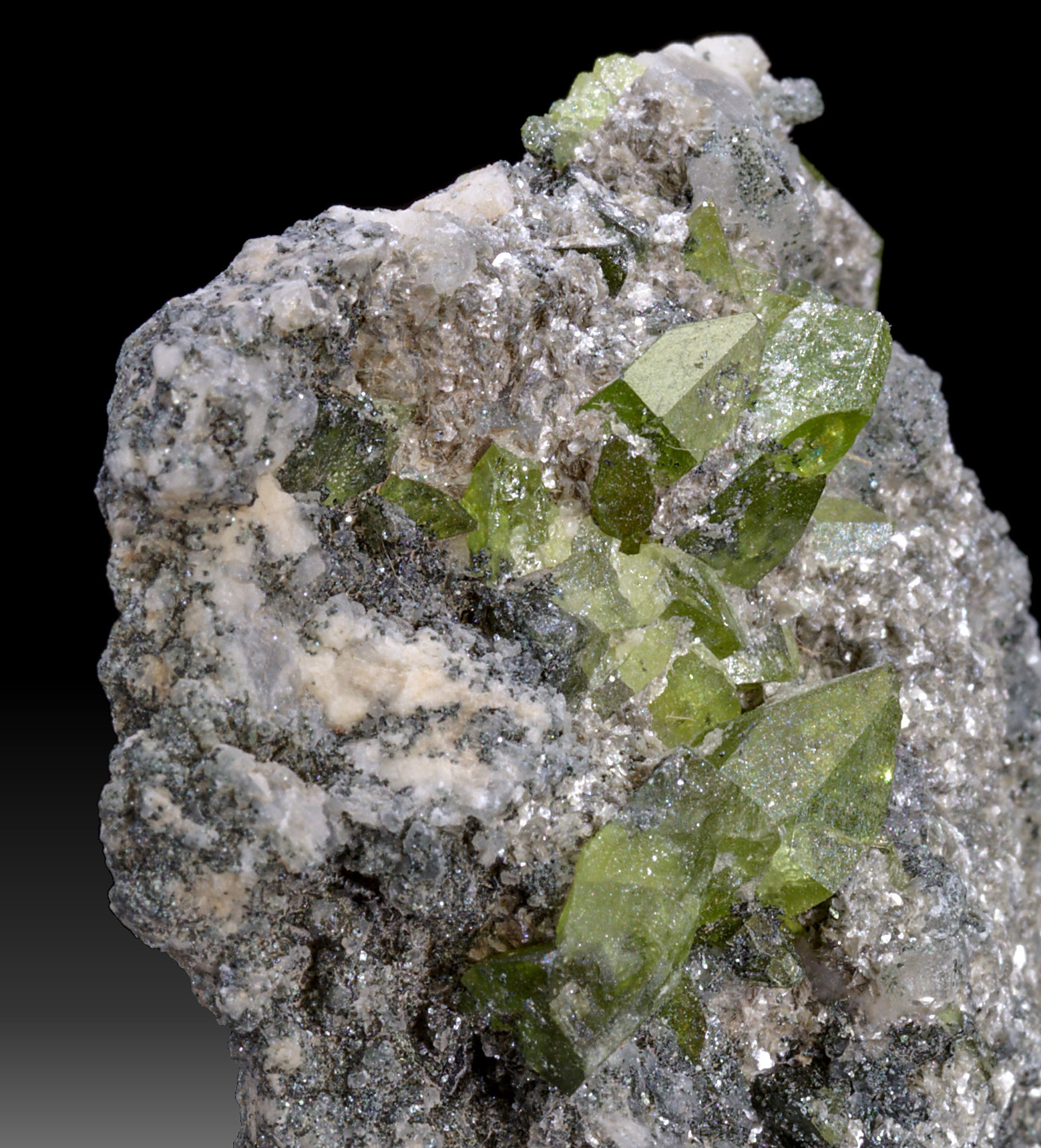 Nr.3: Titanit (Chromhaltig) auf Amesit von Saranui/Ural,Rußland , Kristallgröße ca.4 mm