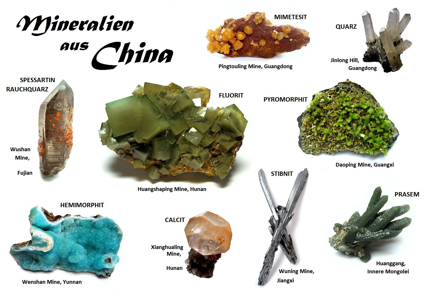 Es geht weiter mit drei Ländern, deren reichhaltige und spektakuläre Mineralienwelt mich und viele andere Sammler fasziniert - China, Marokko und die Vereinigten Staaten: