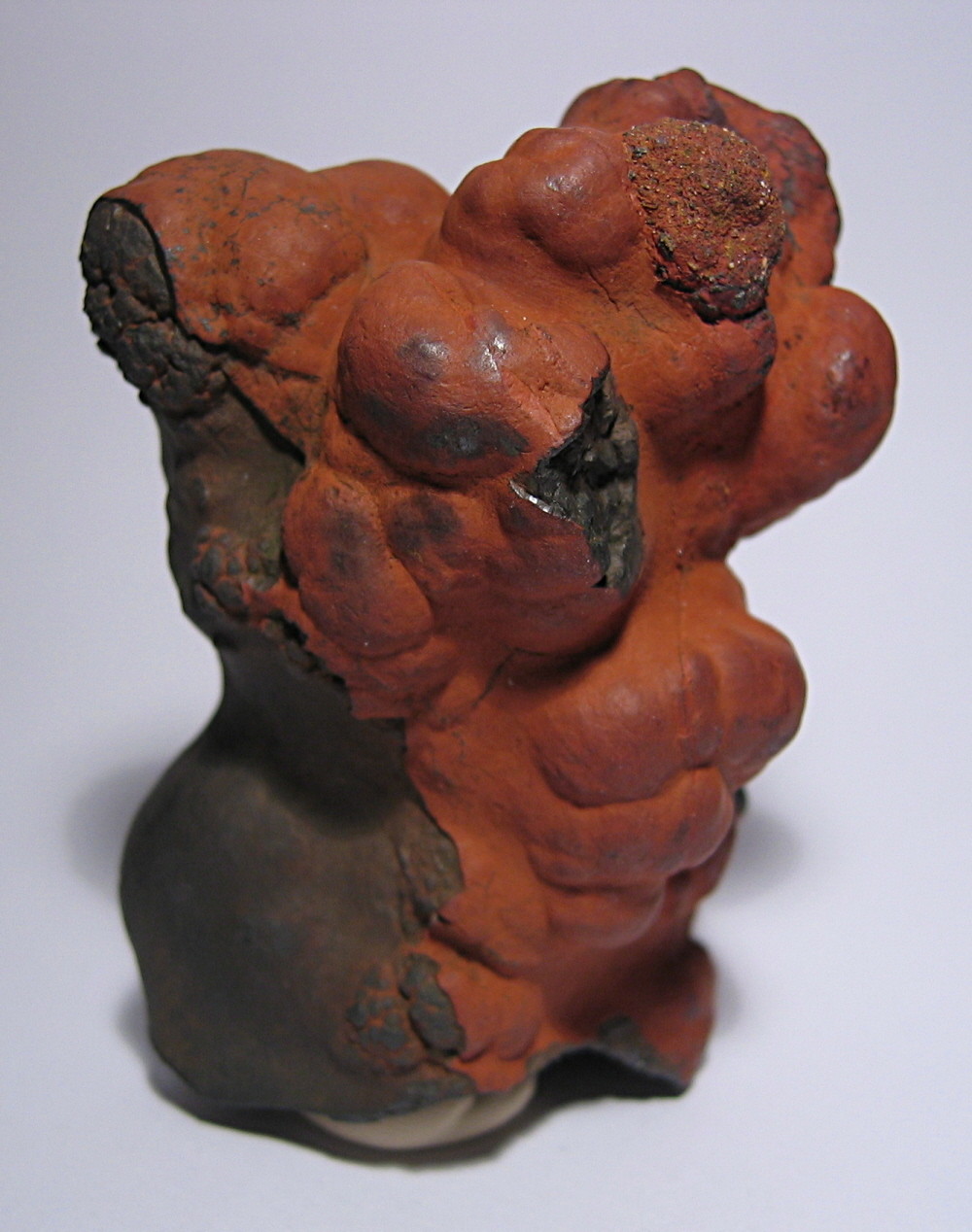 Das geht nicht mit chemischen Mitteln sauber, wenn es wirklich Hämatit ist. Allenfalls, falls die Kruste wirklich dünn ist, ganz vorsichtig mit einer feinen Nadel den Belag zum Abplatzen bringen. Sieht aber meist hinterher schlechter aus.