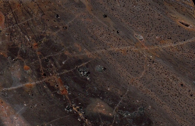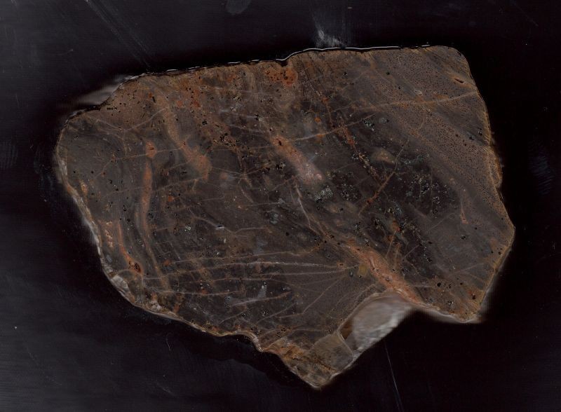 Axel hat eine Hälfte und ein zweites Geröll mir zur Begutachtung zukommen lassen. Unter dem Bino sind KEINE Holzzellen und irgend eine andere pflanzliche Struktur zu sehen.
