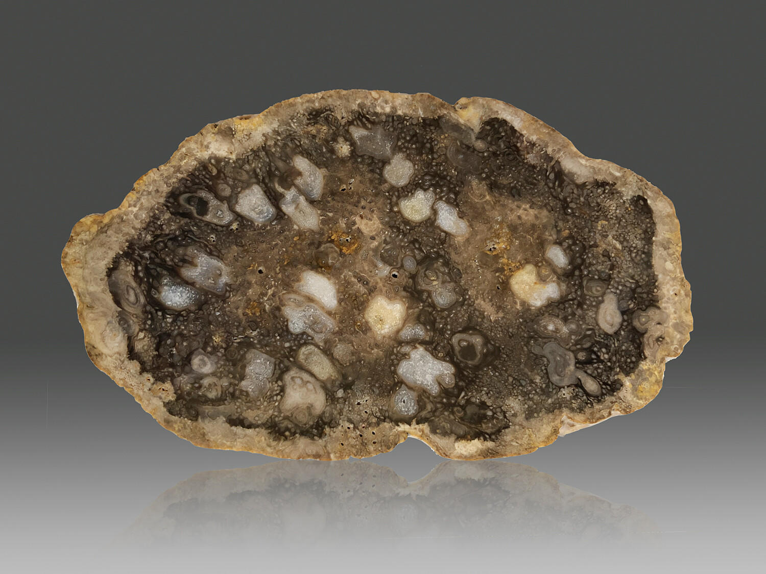 Ich denke nicht, das ein Anschliff die recht attraktive Ansicht des Stückes verbessern würde deshalb bleibt es wie es ist.
